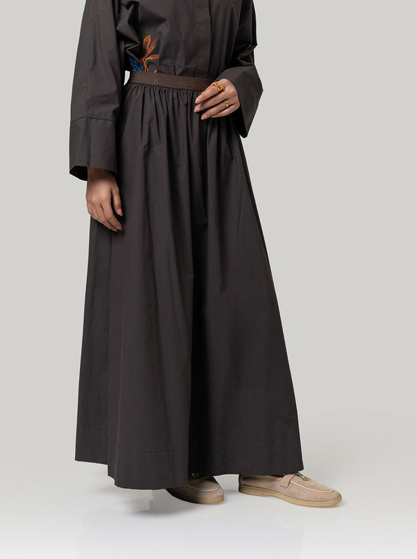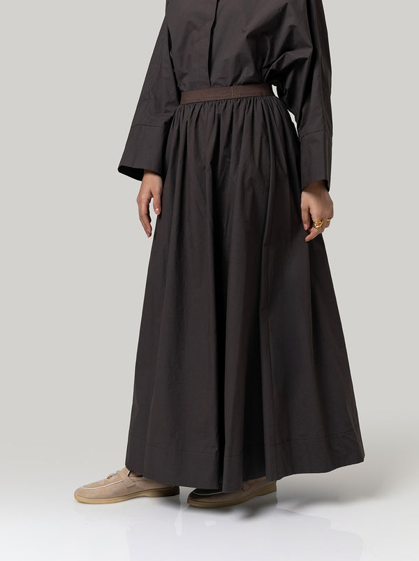 Tampil nyaman dan penuh gaya dengan Elonie skirt. Model rok maxi melebarnya dilengkapi dengan karet pinggang Kami.