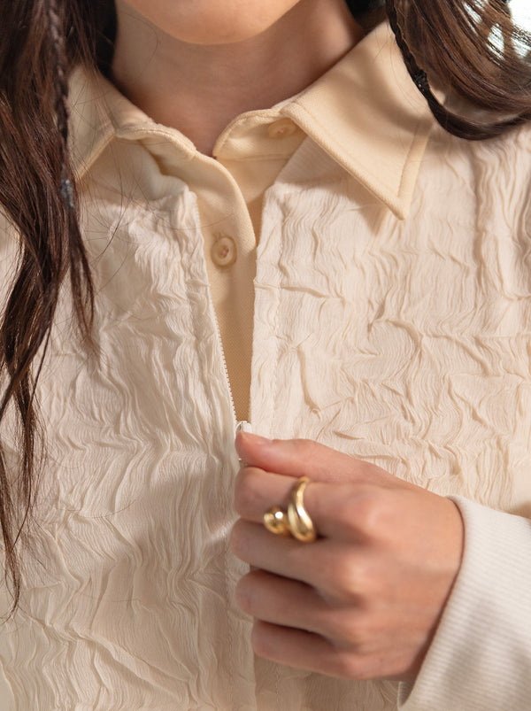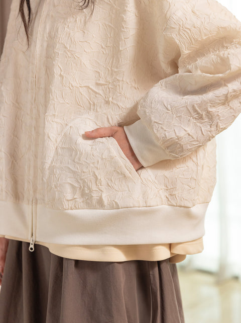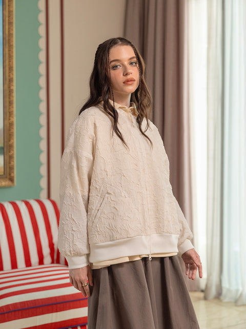 Kale top brings art influence and romantic vibe to a sporty silhouette. The texture is inspired by impasto technique, featuring double zipper for many styling options.