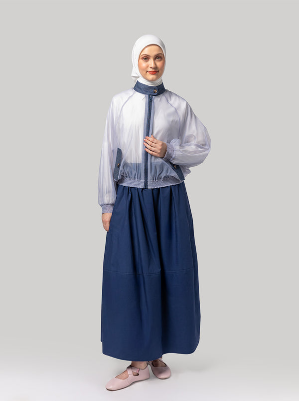 Tampil lebih unik dan gaya dengan Milla outer. Modelnya yang puffy dan transparan, bertemu aksen jeans. Hadir dengan ritsleting depan, pinggang karet dan manset elastis.