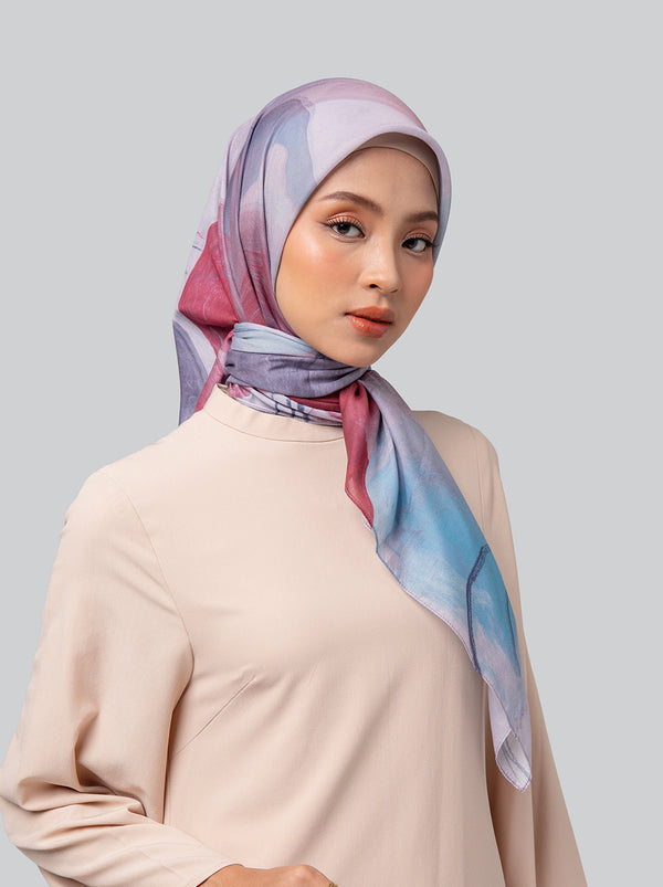 Motif abstrak Reverie scarf menampilkan ilusi mimpi siang hari yang menyenangkan dengan palet warna tropis: cerah, berani, hangat dan menyegarkan. Terbuat dari bahan airy voile yang ringan dengan "pesan tersembunyi"