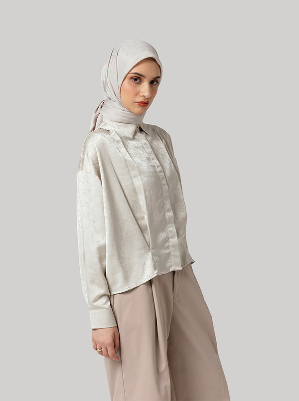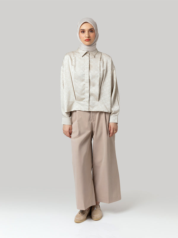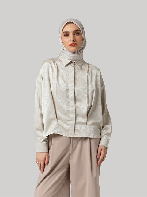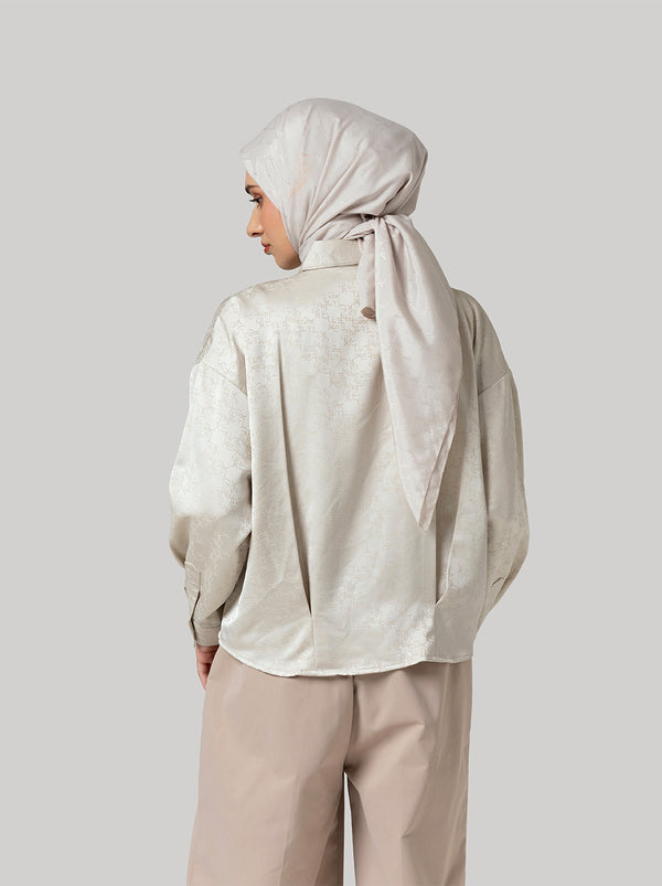 Bahan jacquard khas Kami. tampil menonjol pada Vero Top. Kancing di bagian belakang memberi elemen unik dan kesan rapi.