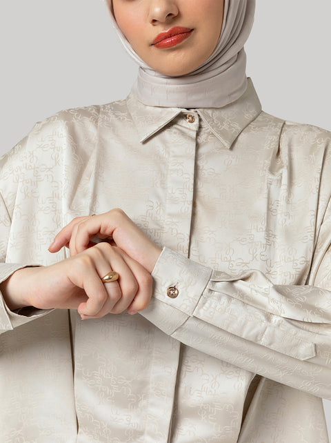 Kami. signature jacquard shines in the simplicity of Vero Top. Buttons on the back side add a twist and clean finish.