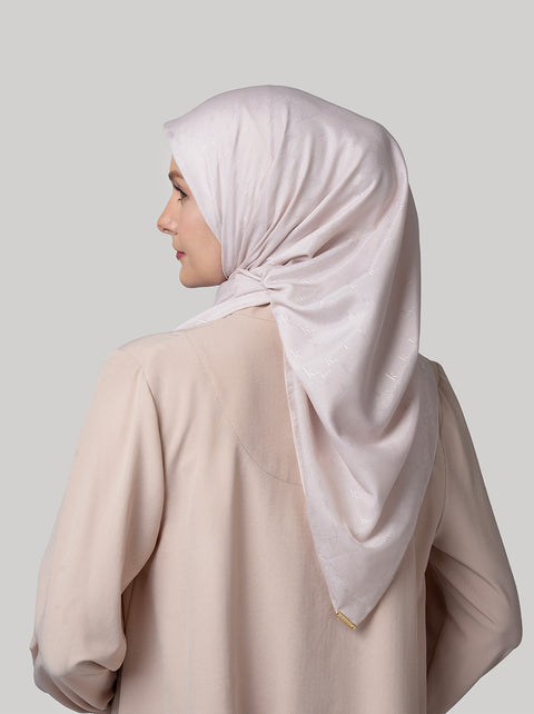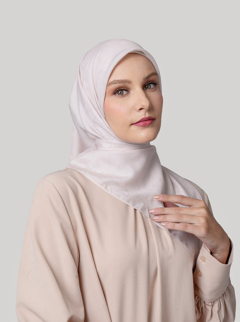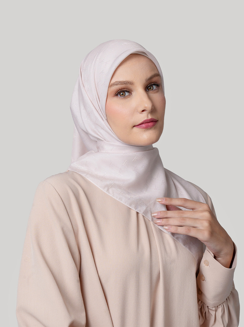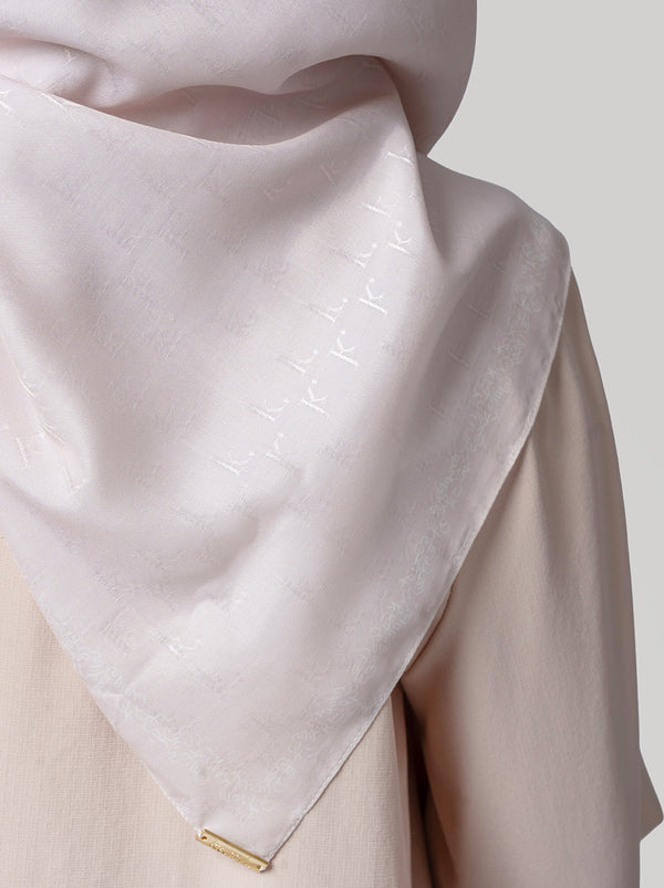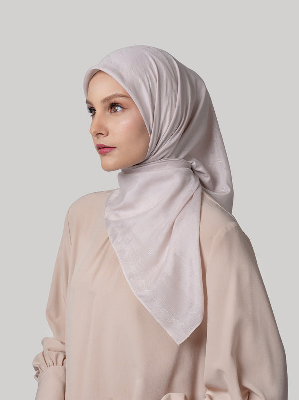 Numa scarf features Kami. signature jacquard with Kami monocurve printed as a delicate border. The shiny texture on cotton blends comfort with luxurious handfeel.