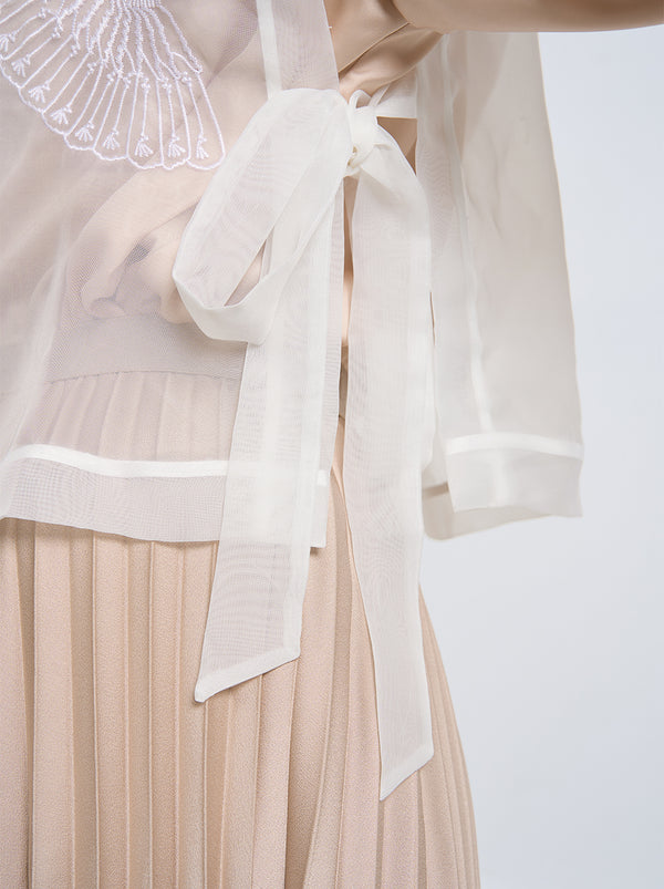 This adorable bib outer is crafted from organza with neatly stitched edges and features a luxurious traditional hand fan icon from Nuansa embroidery on the front. The Lyan Outer includes adjustable ribbons below the arms, allowing you to add your personal touch of style.