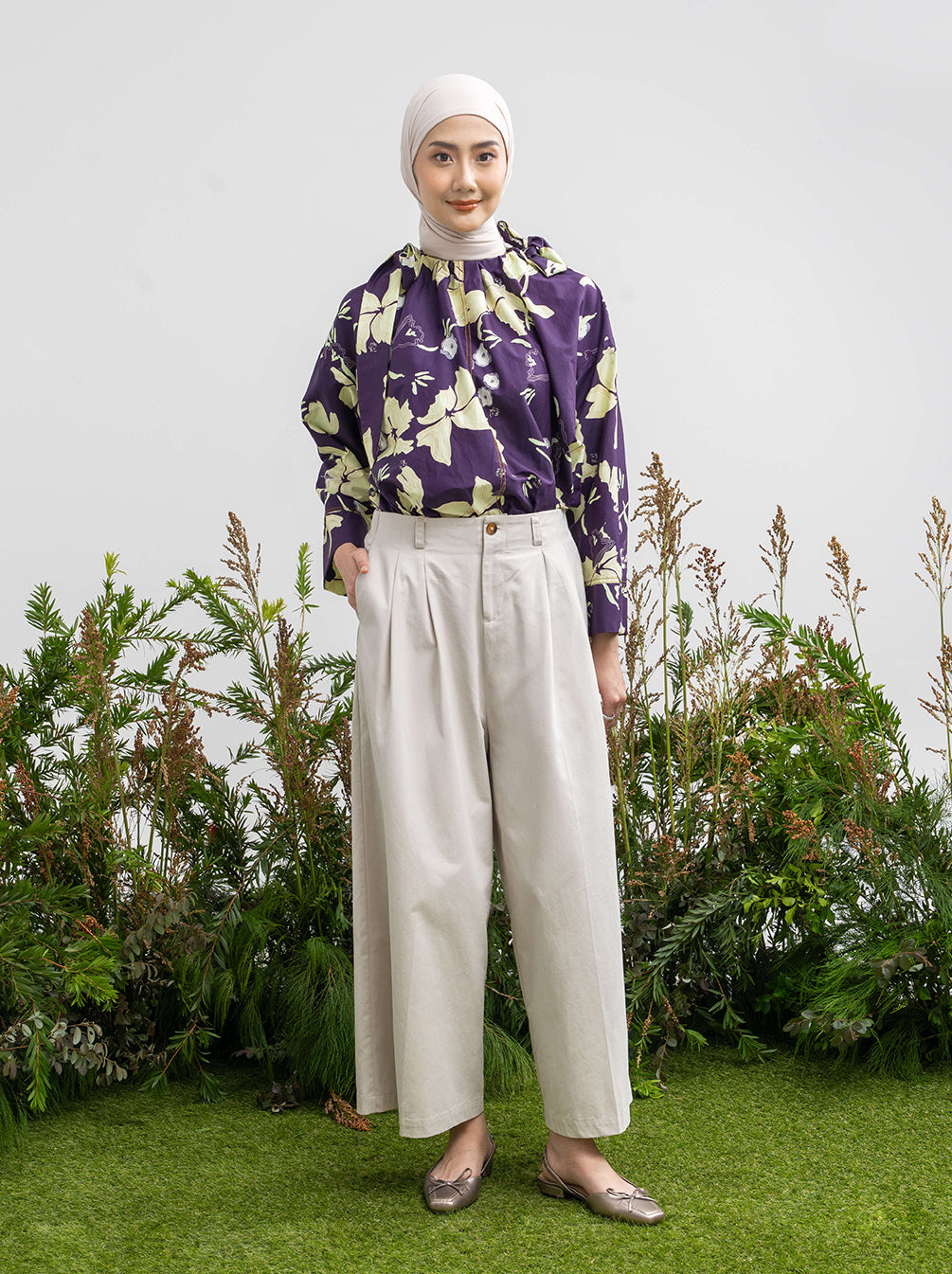 Celana lebar dengan sentuhan lipit yang anggun, cocok untuk pairing berbagai top di Hari Raya. Bahan katun dan banyak saku  menambah kenyamanan dan fungsi sepanjang hari.