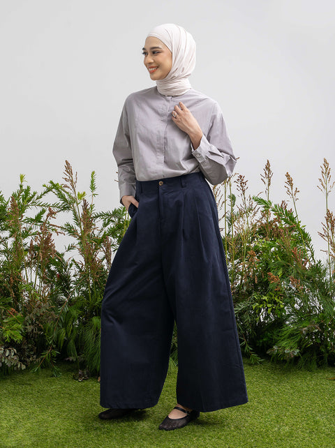 Celana lebar dengan sentuhan lipit yang anggun, cocok untuk pairing berbagai top di Hari Raya. Bahan katun dan banyak saku menambah kenyamanan dan fungsi sepanjang hari.