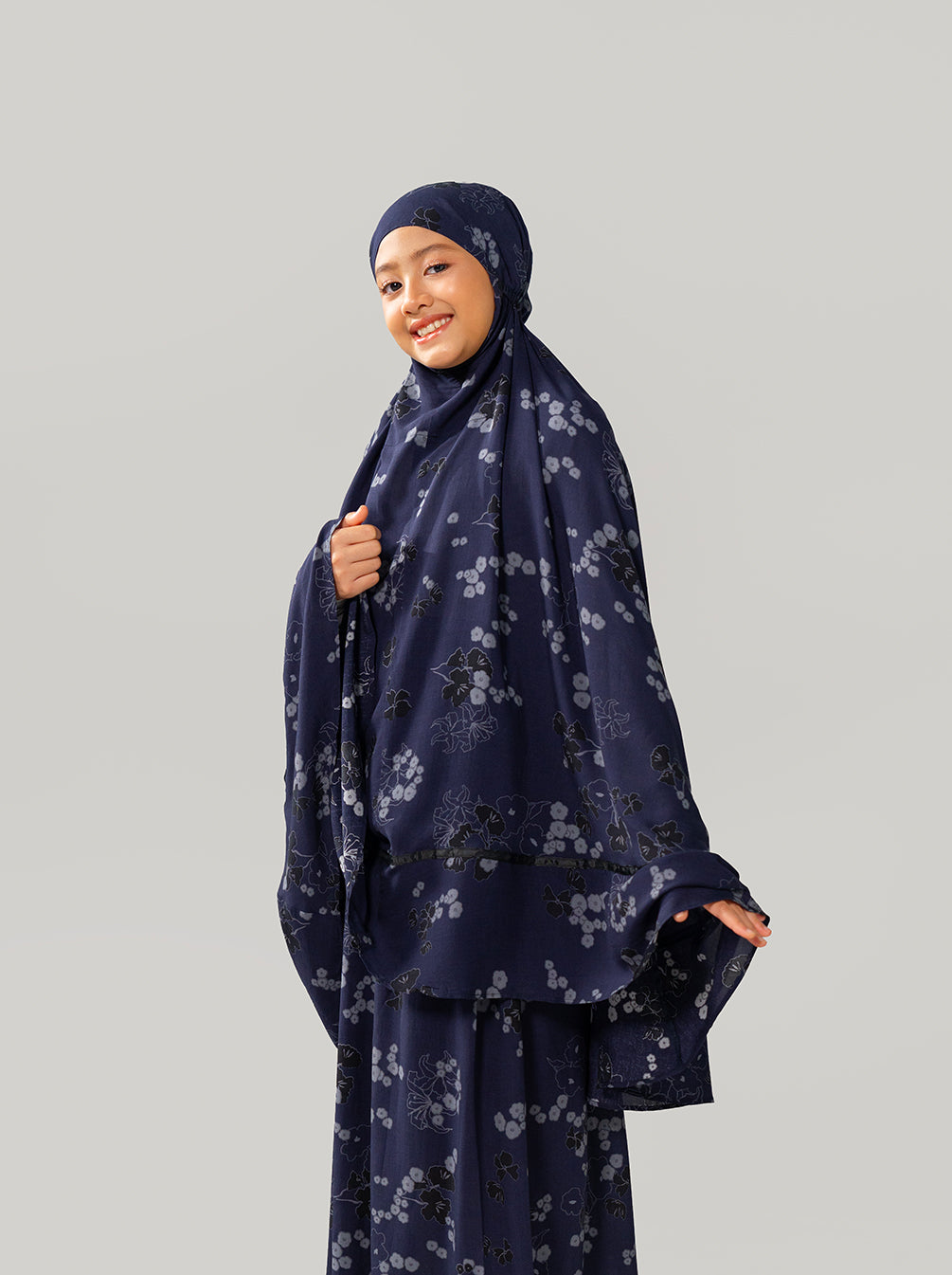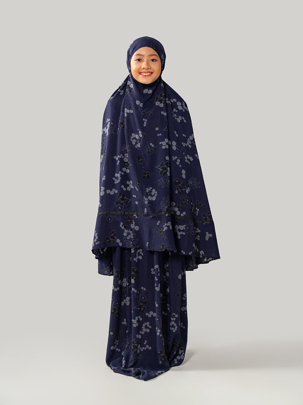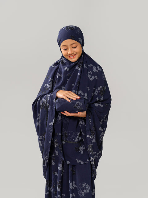 A Raya special kids prayer set with dainty florals and top handle pouch. Lightweight, comfortable, compact for traveling.