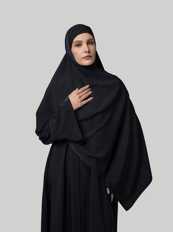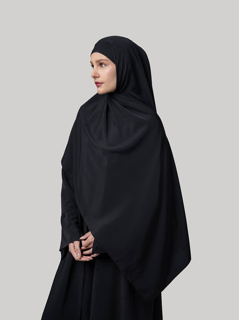 Amara Instant Khimar is made to accompany your spiritual hajj journey to daily activities, comfortably. With airy and iron-less material, featuring v-shaped corners and maximum coverage.