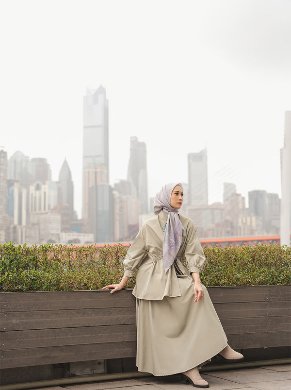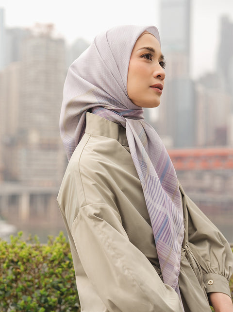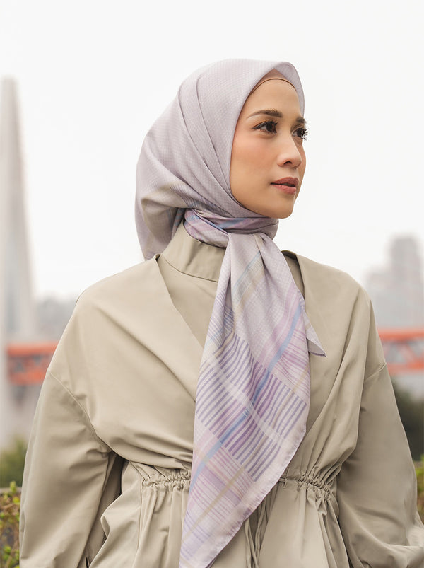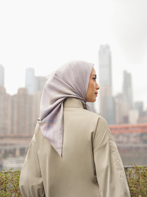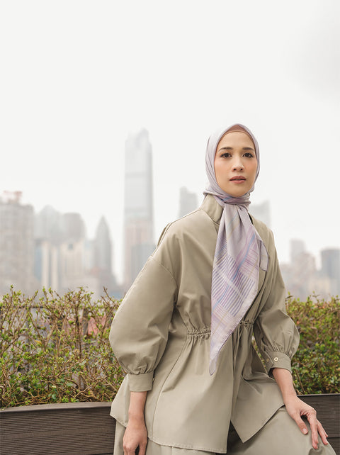 Hema scarf yang minimalis terinspirasi dari garis desain modern dan arsitektur perkotaan sebagai pengingat akan progres dan kemajuan.