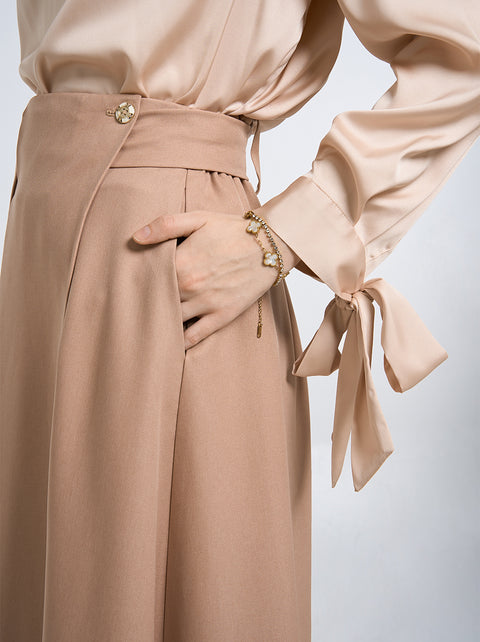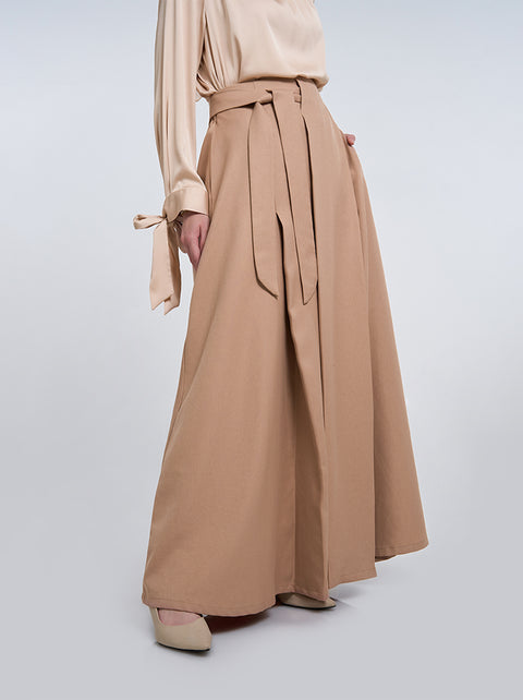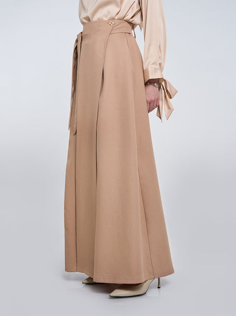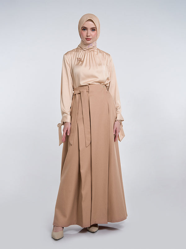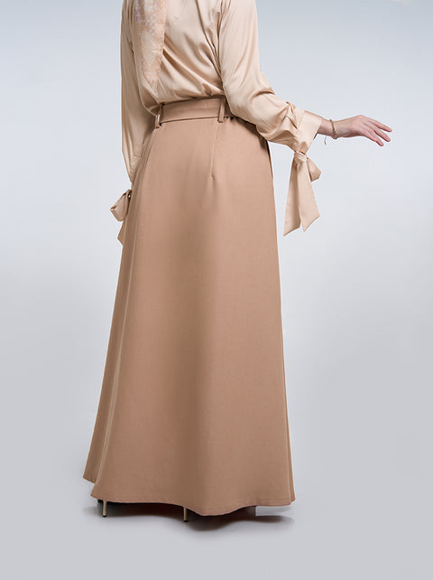 RAJINI BOX PLEATED SKIRT PLAIN ALMOND