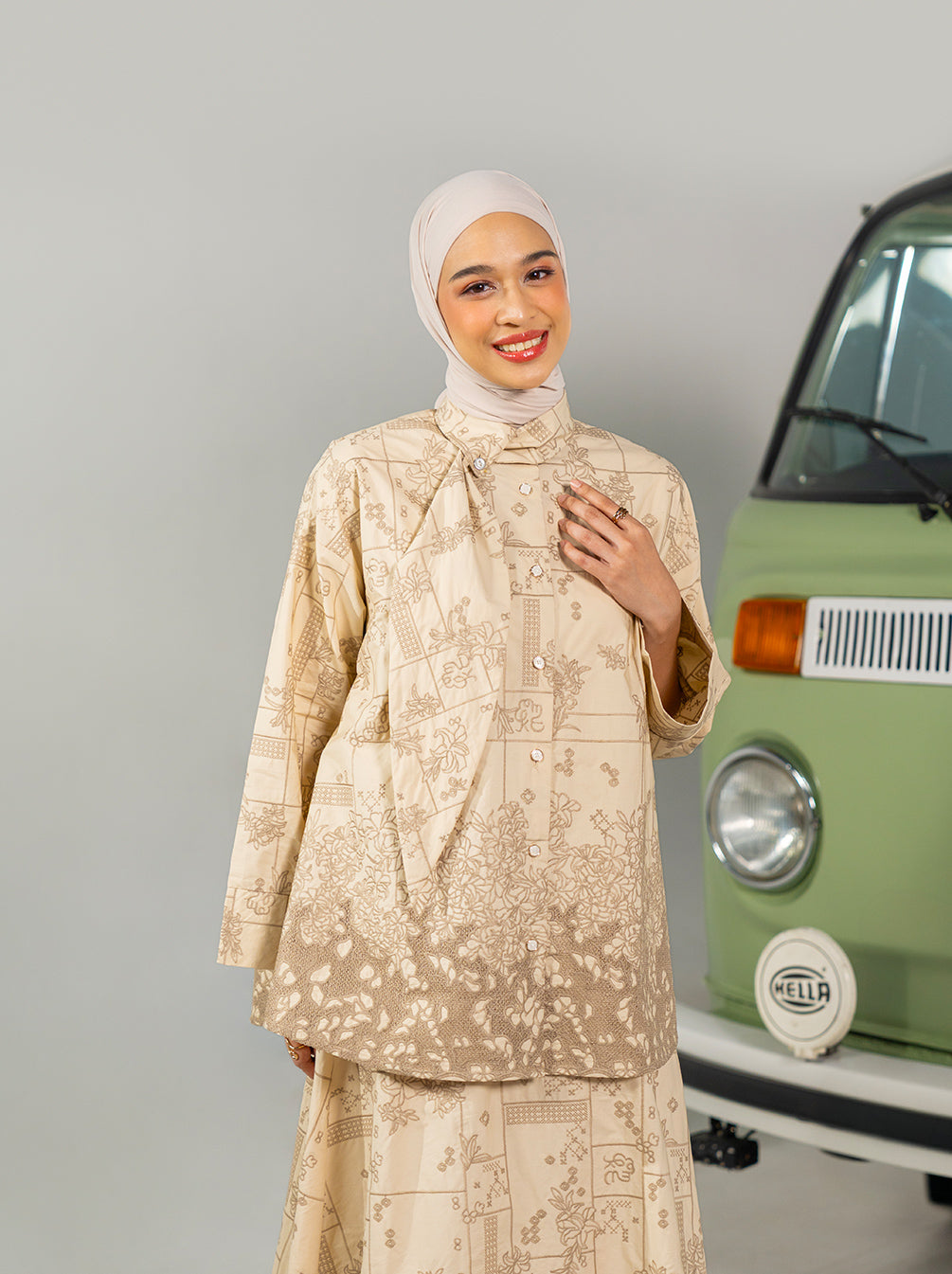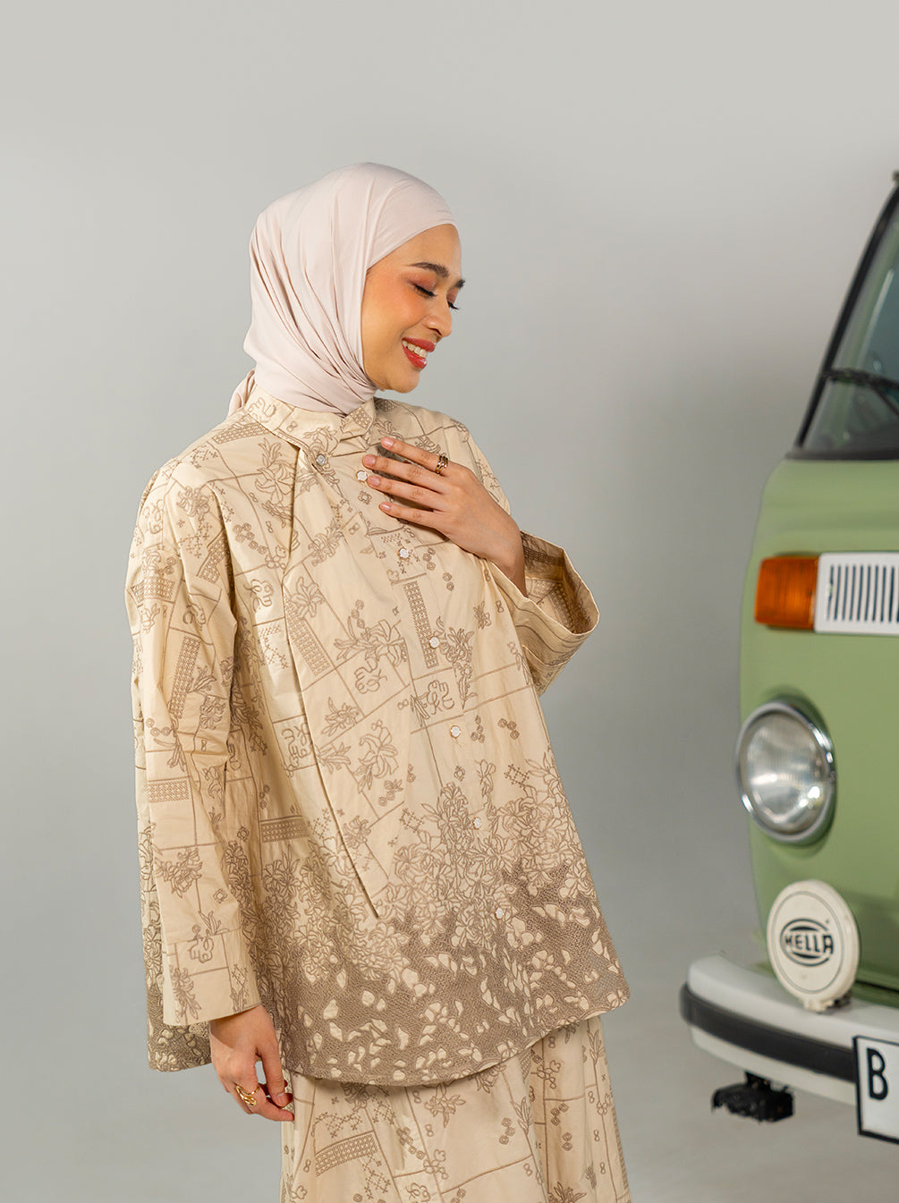 Petra adalah atasan katun bordir klasik dengan panel floral yang anggun, detail khas Kami, serta kerah simpul unik yang memberi sentuhan kontemporer untuk tampilan Raya.