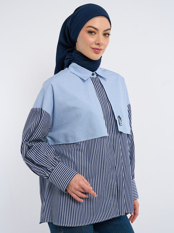 The Akemi Top features layered details on the front, complemented by a drop-shoulder cut and puffy sleeves, adding a chic touch to your look.