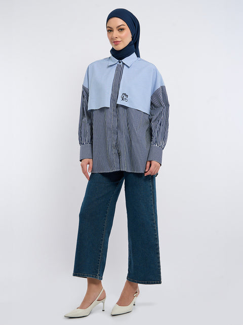Akemi Top menampilkan detail berlapis pada bagian depan, dilengkapi dengan potongan drop-shoulder dan lengan menggembung, menambahkan sentuhan chic pada penampilanmu.