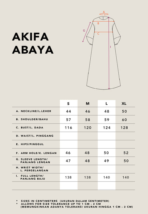 Abaya polos untuk menemani perjalanan haji hingga aktivitas sehari-hari dengan bahan yang sejuk dan tidak mudah kusut. Delengkapi dengan lubang jari, saku sisi dan bordir khas Kami.