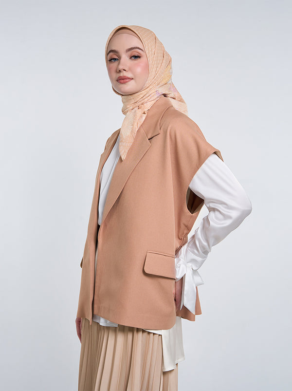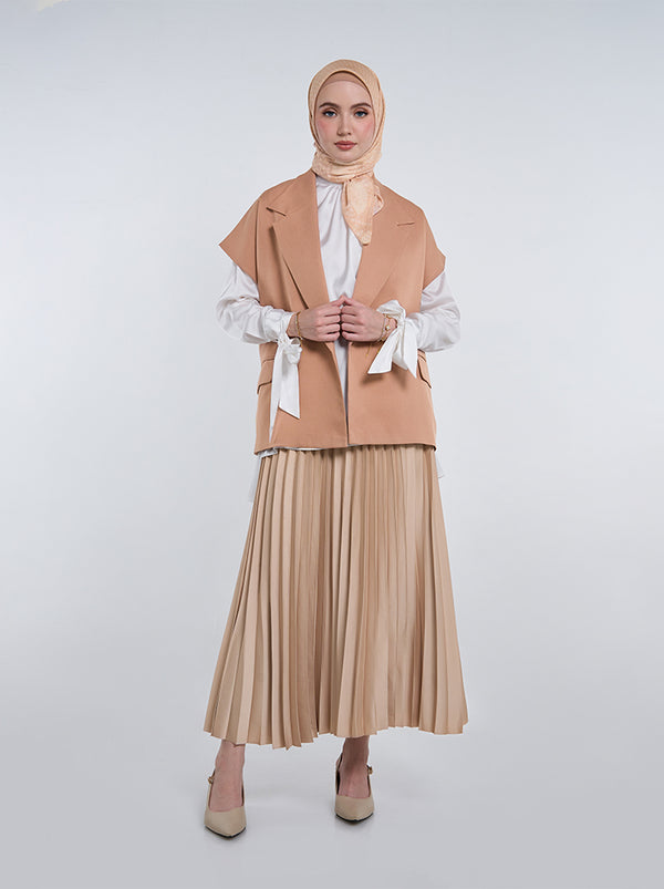 The Anin Outer is a basic vest with gathered elastic on the back and two functional pockets on the front, a perfect addition to complete your look!