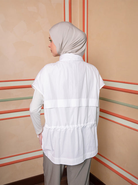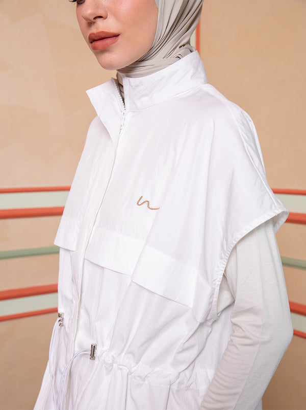 Step on and off the court in style with Kami. Flow Ivara vest. The clean design features hidden zipper and waist drawstring for adjustable fit.