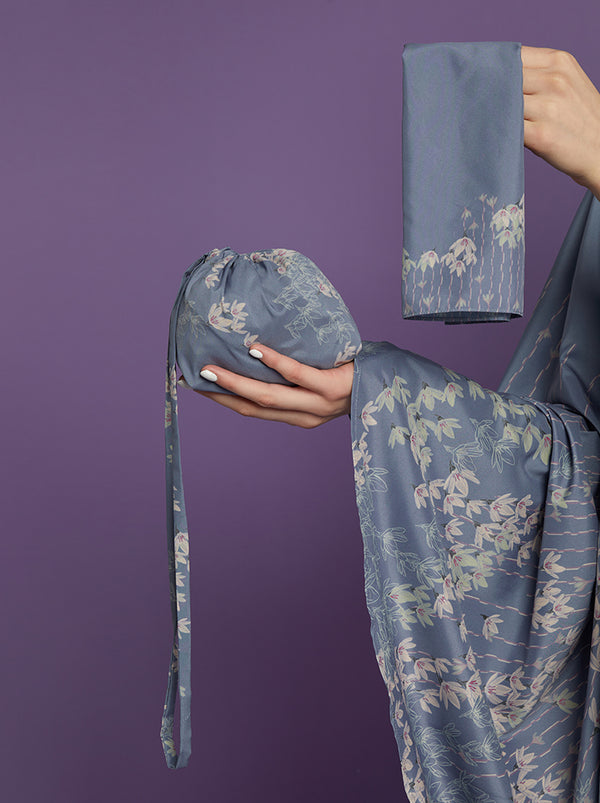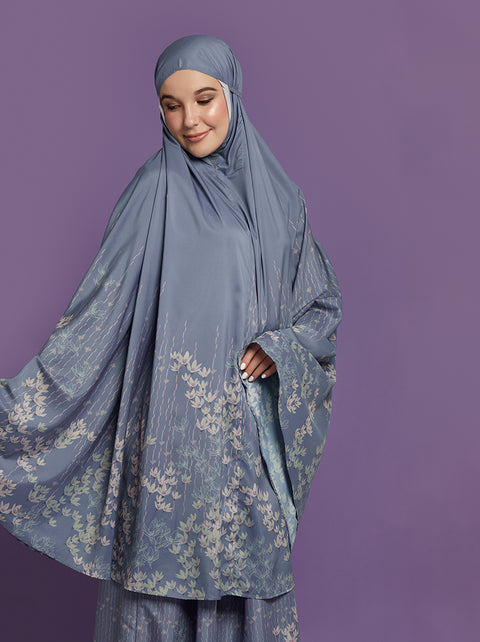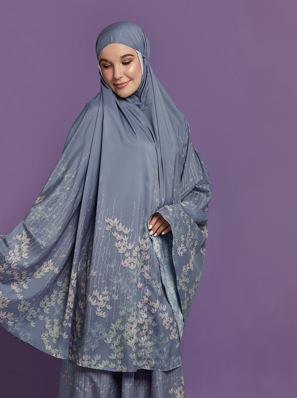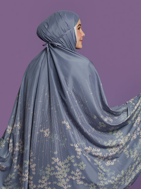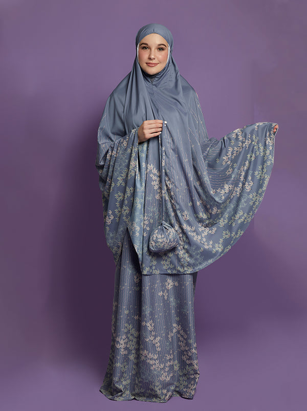 Mukena ringan berbahan satin lembut, dilengkapi dengan tali yang dapat diikat di bagian kepala, sajadah mini, dan dikemas dalam kantong serut.