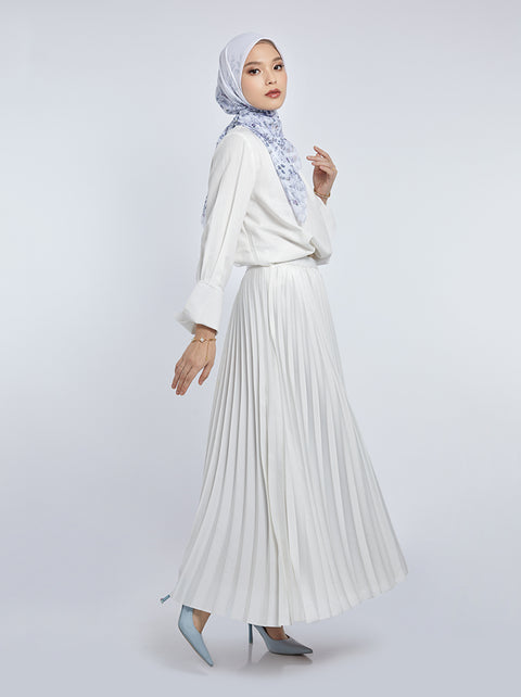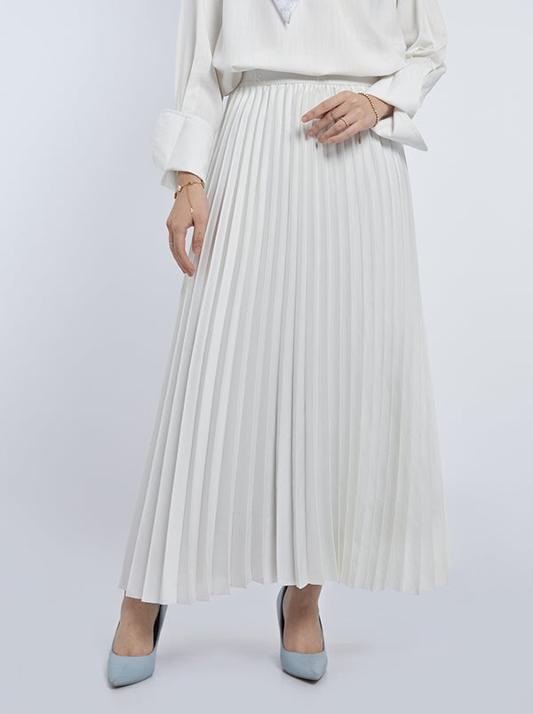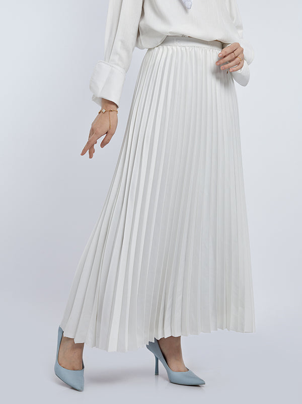 Rok lipit berbahan satin dengan karet pinggang elastis dan logo signature K.