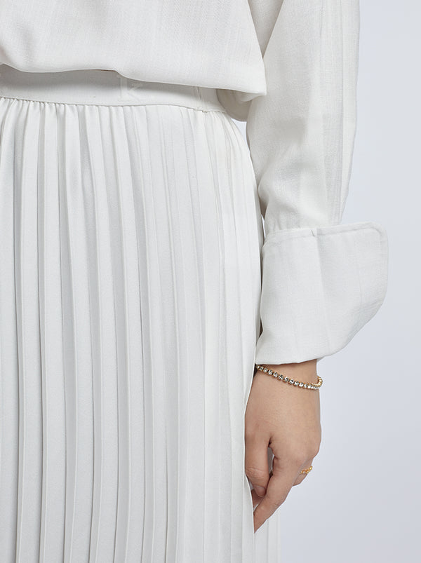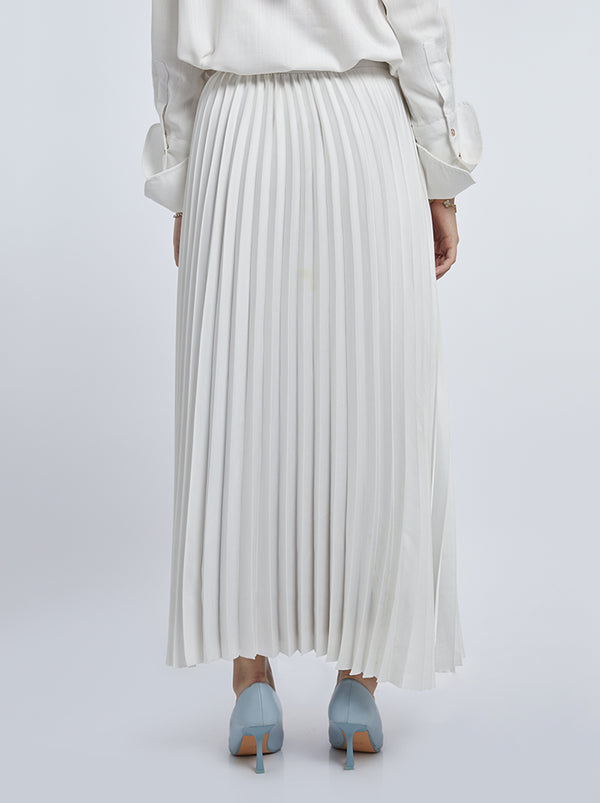 Pleats skirt made of satin with elastic waistband and embossed K. signature logo.