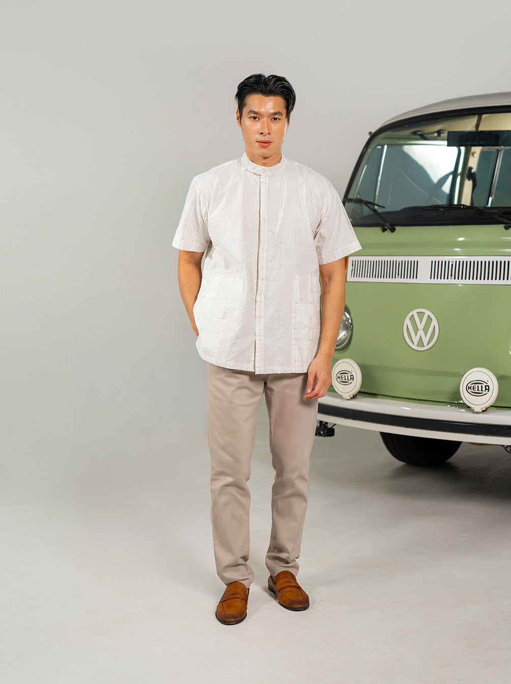 Crafted in cotton with cross-stitch panels and Kami’s signature embroidery, Shiraz Koko is designed with relaxed short sleeves and a unique double-button round collar for an effortlessly playful finish.