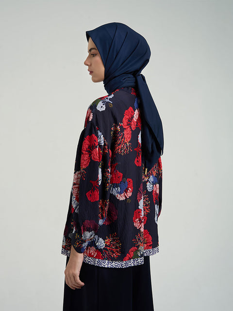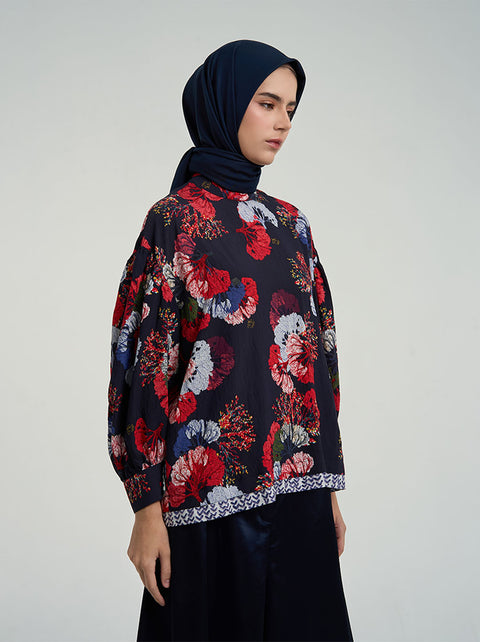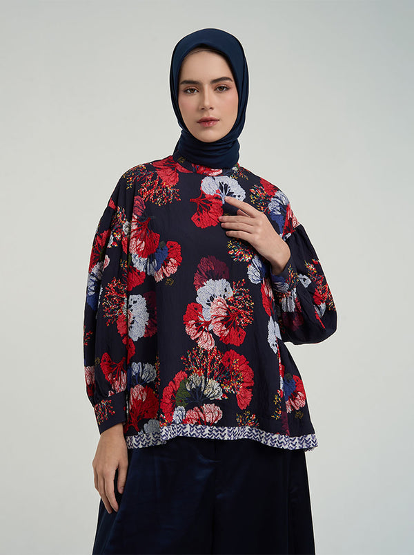 Motif alam dan warna-warna primer tampil dominan di indahnya Zaina Top. Potongan layering yang unik dan lengan berkerut memberi aksen pada bahan Zaina yang ringan dan sejuk.